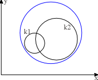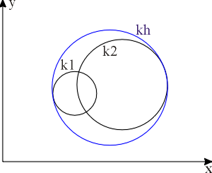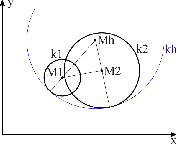 Unter diesen Voraussetzungen gibt es eine eindeutige Lösung für die gesuchte Klotoide. Diese Klotoide verbindet die beiden Kreise miteinander.