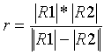 wobei d den Abstand der Kreislinien bezeichnet und r durch folgende Formel definiert ist: