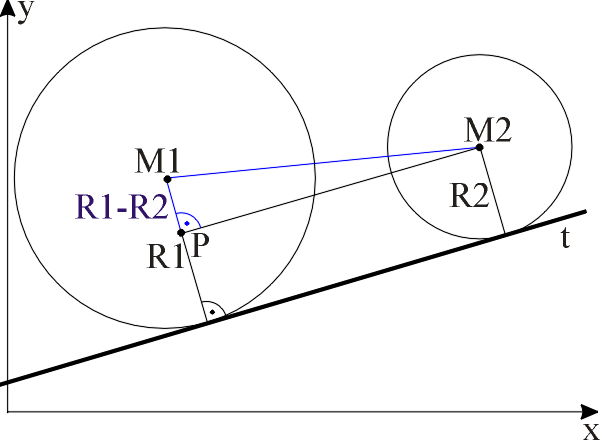 Geometrie-Elemente, die einen Punkt eines Kreises mit einem Punkt eines anderen Kreises verbinden.
