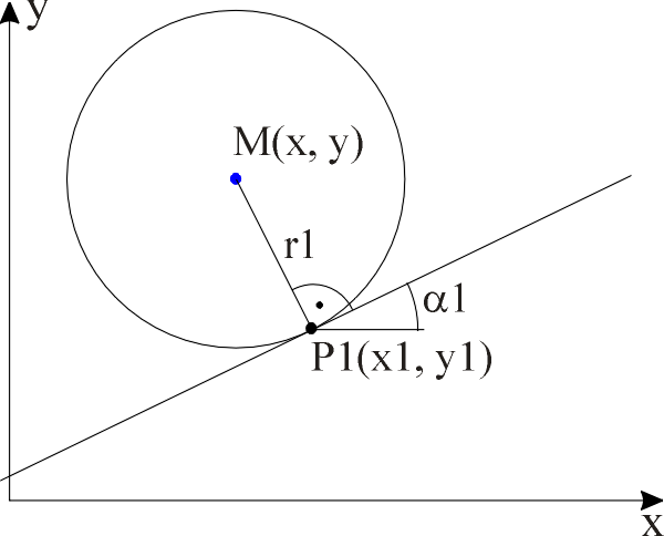 P(x1, y1) Koordinaten eines Punktes auf dem Kreis a1 Tangentenwinkel im Punkt P r1 Radius im Punkt P