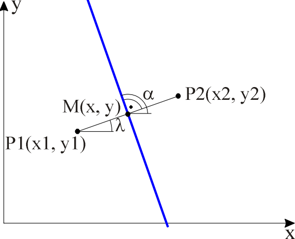 P1 (x1, y1) Koordinaten des 1. Punktes auf der Geraden P2 (x2, y2) Koordinaten des 2. Punktes auf der Geraden